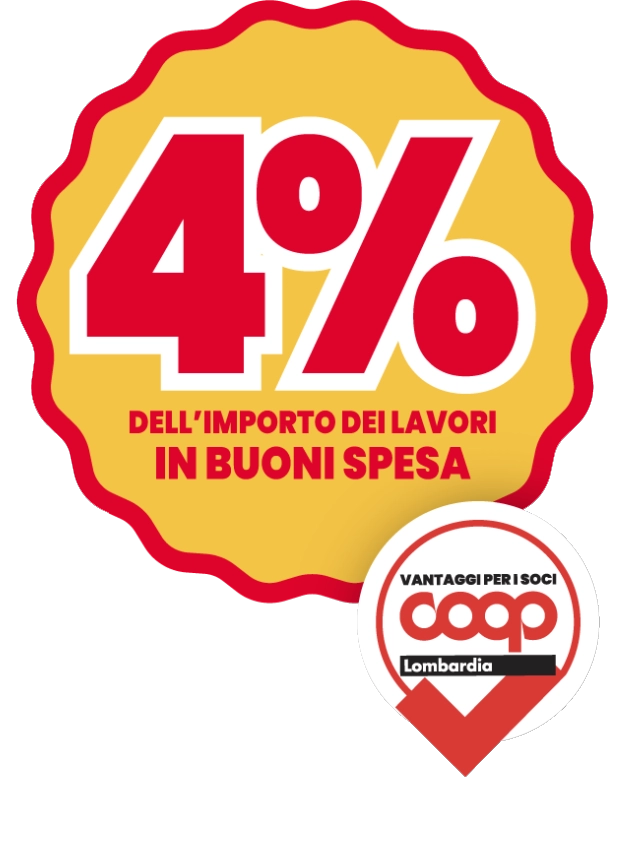 I soci Coop Lombardia che scelgono HD Sistema Ristrutturazione ricevono un premio pari al 4% dell’importo dei lavori (calcolato sulle fatture emesse, IVA esclusa) in buoni spesa Coop.
